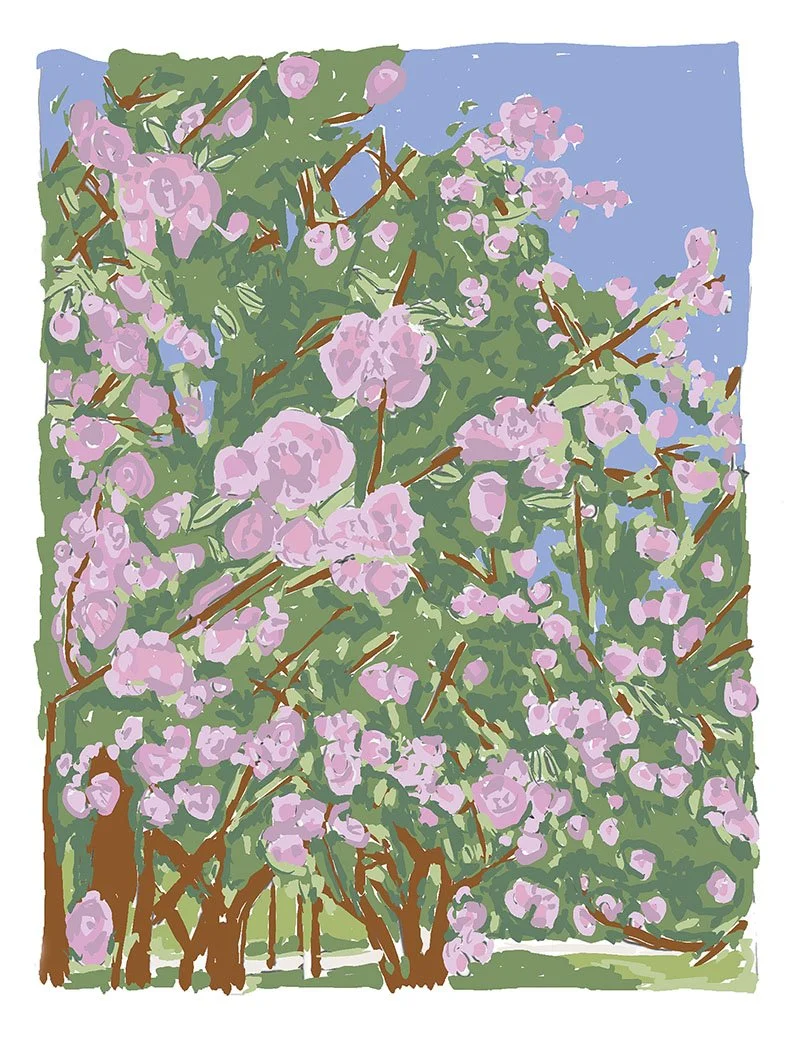 Beneath their delicacy lies quiet defiance: a refusal to mirror the insular, often somber tone of mainstream Colombian art. Mosseri treats transience not as loss but as transformation. Her works are less landscapes than parajes—compressed visions that center emotional and atmospheric resonance over geographic specificity. Lacking horizons, stripped of grand vistas, they focus the gaze inward, privileging stillness and presence over spectacle. Her embrace of beauty is deliberate and provocative. By choosing the cherry blossom—an icon of excess, theatricality, and impermanence—Mosseri reclaims aesthetic pleasure as a serious intellectual act. Like Damien Hirst, who described the blossoms as “show-offs,” she revels in their lushness, but filters it through restraint, clarity, and painterly precision. Her four-part process—photography, digital drawing on iPad, large-format printing, and final translation to canvas—fuses tradition and technology. These works aren’t nostalgic for painting’s past, but rather chart new territory, extending the medium through contemporary tools and sensibilities. What results is a body of work that’s visually tender yet conceptually rigorous. A childlike candor runs through her images, softening their sophistication and inviting the viewer into an open, sincere encounter. Hers is not a practice of grief or fatalism, but one of cyclical renewal—a visual meditation on life, death, and the spaces in between. In a cultural landscape where art often grapples with trauma, Mosseri offers an alternative: a vision that is unafraid of beauty, attuned to time, and rooted in the persistent bloom of the ephemeral.