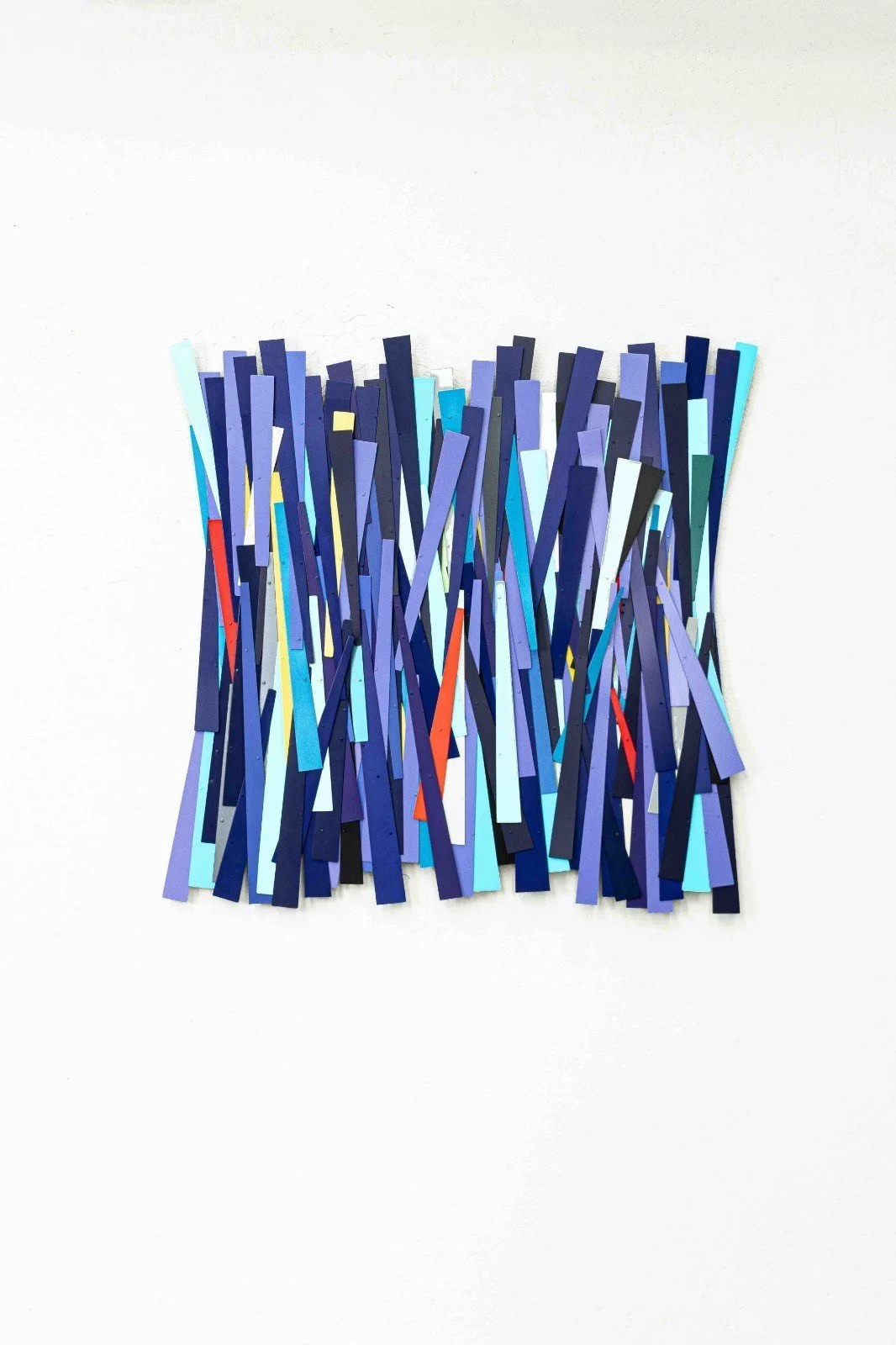 Other highlights include metal platform sculptures that reference the brushwork of Van Gogh and evoke seasonal rainfall, as well as vertical columns in red, white, and yellow that nod to Latin American modernist sculpture, notably the work of Mateo Manaure.