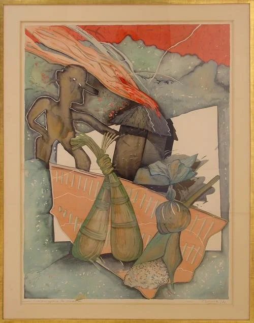 LUIS FERNANDO BENEDIT Inquire Cuando se quemo la cosecha, 1986 watercolor on paper (on two sheets) 50 1/4 x 36 in. (127.8 x 91.5 cm) Slide 1 Slide 1 (current slide)