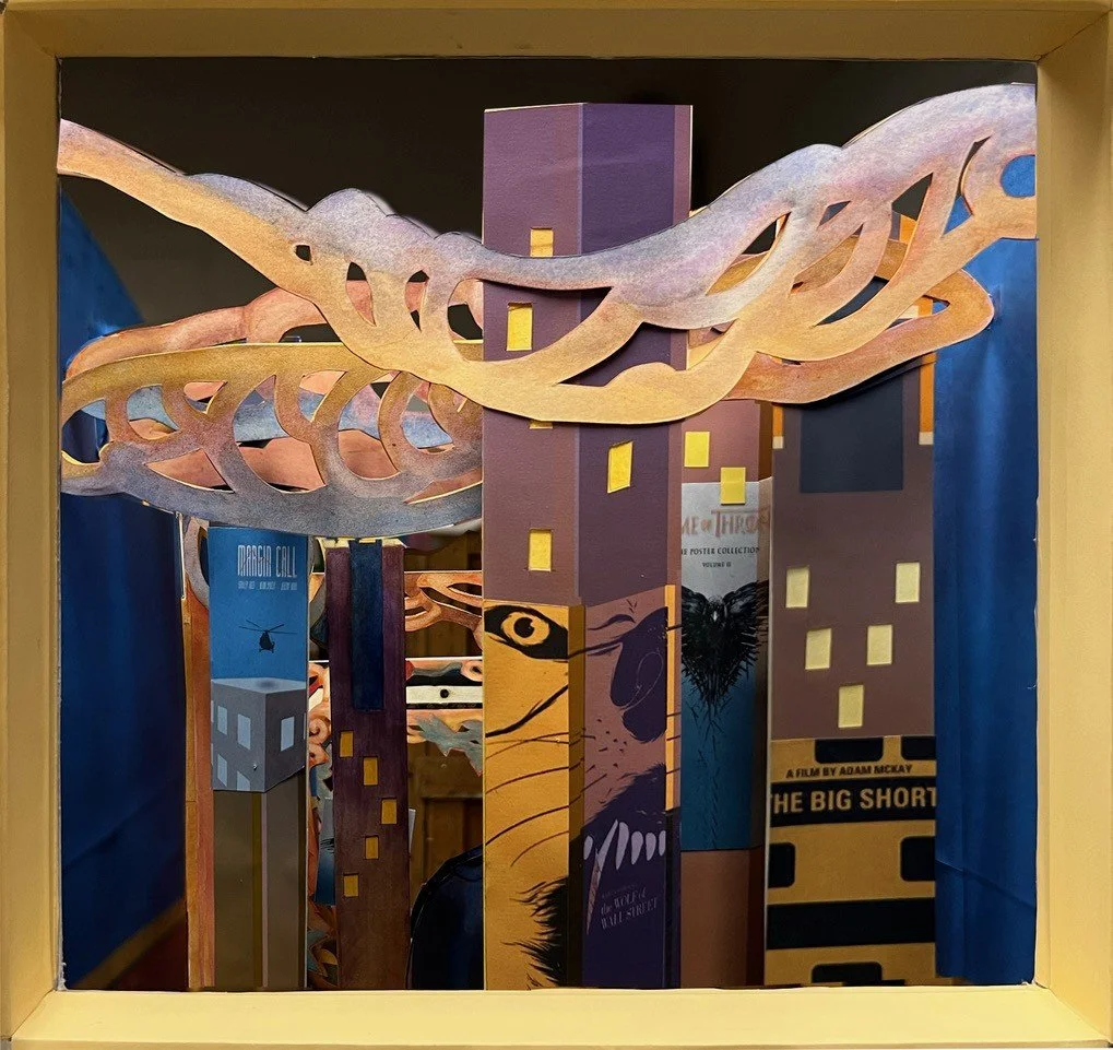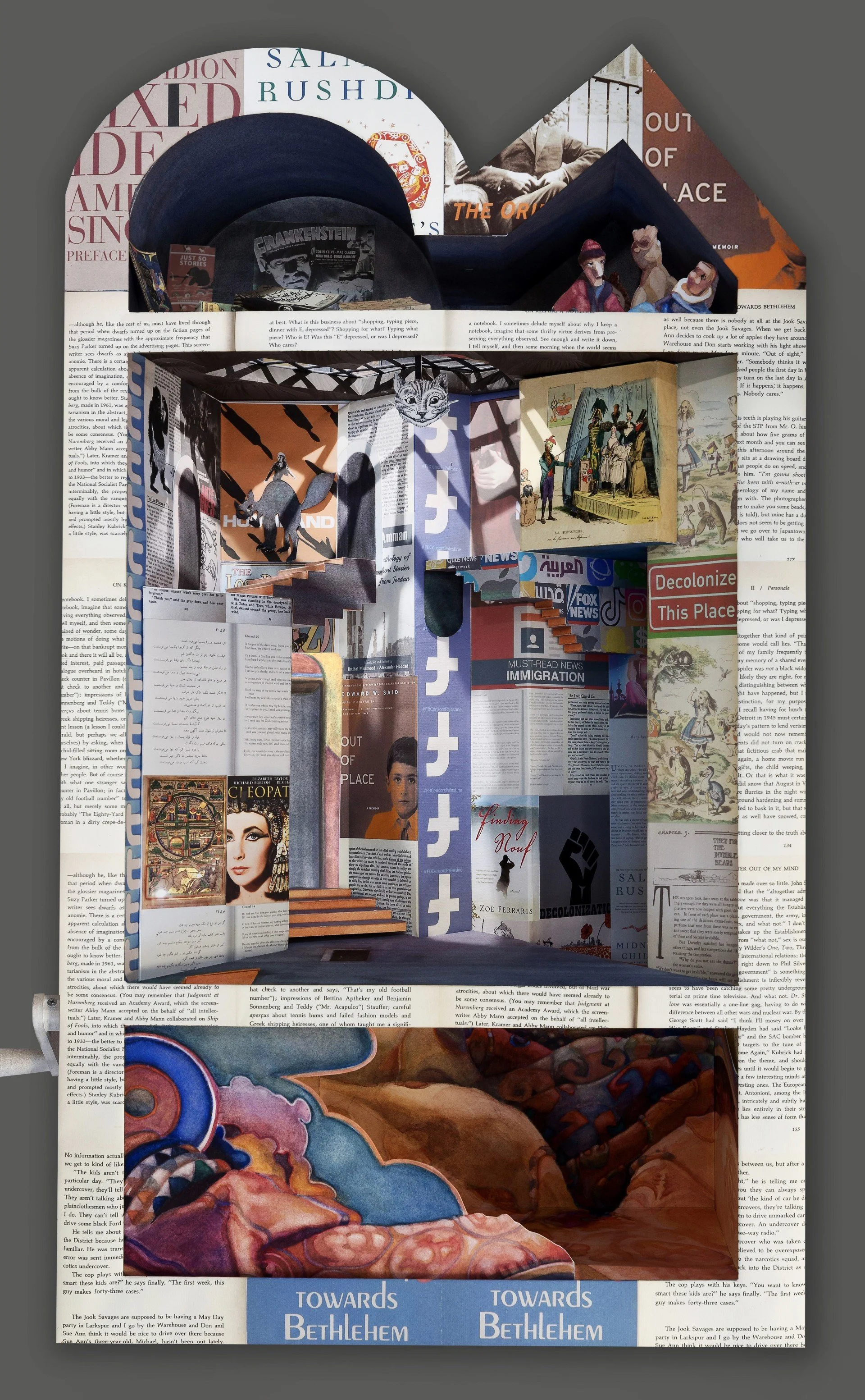Each sculpture in the exhibition bears the hallmark of a three-dimensional book, meticulously wrapped in the original texts of classic tales that inspired the artist's journey into the realms of imagination. From the whimsical adventures of "Alice in Wonderland" to the fantastical realms of "Gulliver's Travels" and the enchanting allure of "The Secret Garden," these sculptures breathe new life into beloved stories, disrupting and re-envisioning their narratives through contemporary text and imagery.